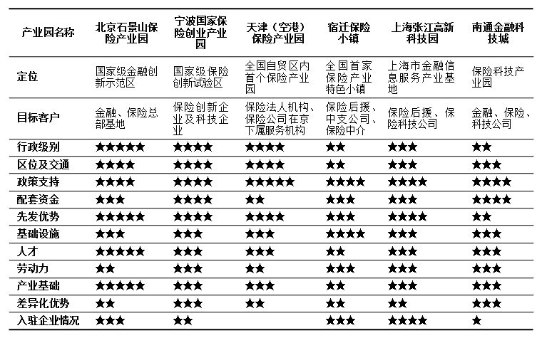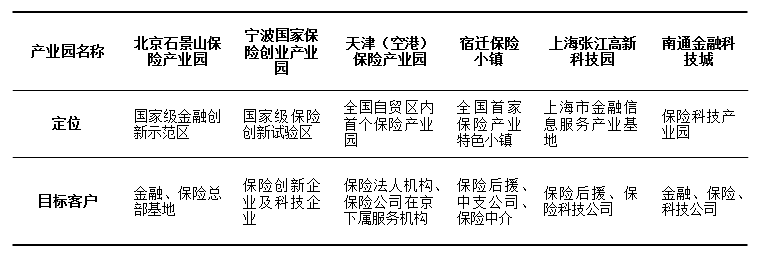 表3:我国主要保险产业园定位及目标客户情况概览