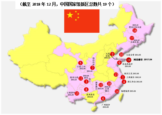 从改革和创新发展来看,由国务院批准设立了承担国家重大发展和改革开放战略任务的综合功能区,即国家级新区。新区的成立乃至于开发建设上升为国家战略,总体发展目标、发展定位等由国务院统一进行规划和审批,相关特殊优惠政策和权限由国务院直接批复,在辖区内实行更加开放和优惠的特殊政策,鼓励新区进行各项制度改革与创新的探索工作。截至2018年12月,中国国家级新区总数共19个。