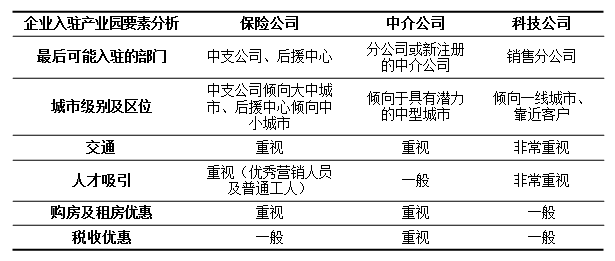 引进以保险销售职场、电销、理赔支持、后援、中支机构、经纪、代理、公估公司等中低端产业聚集为主的,以完成入驻率为主要目的的传统型招商引资计划。