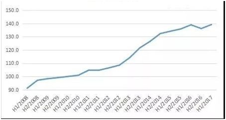 房地产投资是个长期的行为,对投资项目的未来增值预期非常重要。近十年,泰国房价都在稳步上涨,自2009年初的房价作为标准记作100,房价指数从2008年的90直升至现在的142,累计涨幅55% 且涨势平稳。