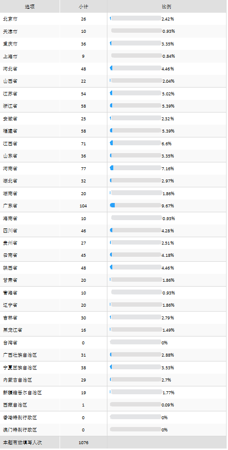 鉴于1076个样本里,有22个样本来自于未注册团队,故该22个样本将在后续分析中剔除,因此我们本次调查有效样本为1054个。