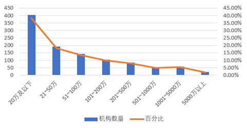 去年总收入(包括筹款、购买项目即各类捐赠等)在20万元及以下的机构占比39.22%,在21-50万元的占比17.94%,在500万元及以上的仅占约10%。可见大部分公益组织总体年度收入较少。