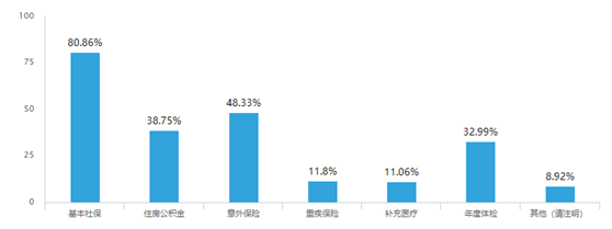 受访者中,基本社保的覆盖率达到80%以上。但是住房公积金作为法定义务之一,覆盖率仅有48.33%。各类补充商业保险的缴纳比例也非常低。且仍然有20%的公益从业者没有基本社保,并且绝大多数仍然存在保障类型不全面、保障额度不够的问题。