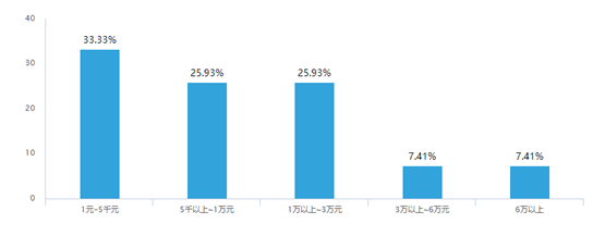 23.05%的受访者目前投资了金融资产产品,该比例与现金资产在“10万元以上”的家庭占比(24.72%)十分接近。其中约四成投资金额在5万元以下。